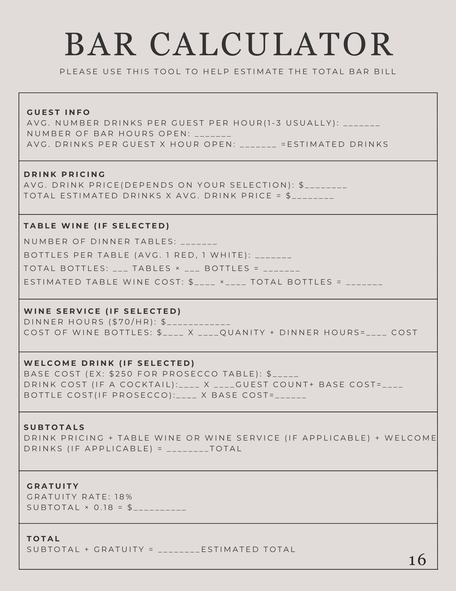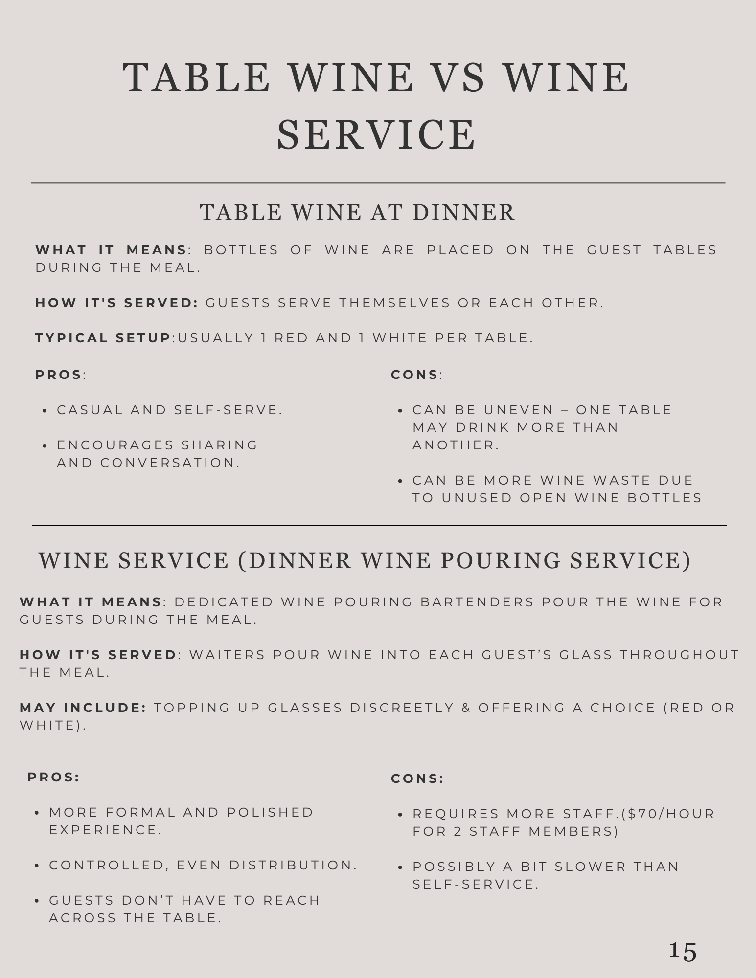 Table wine vs wine service...............................................................15