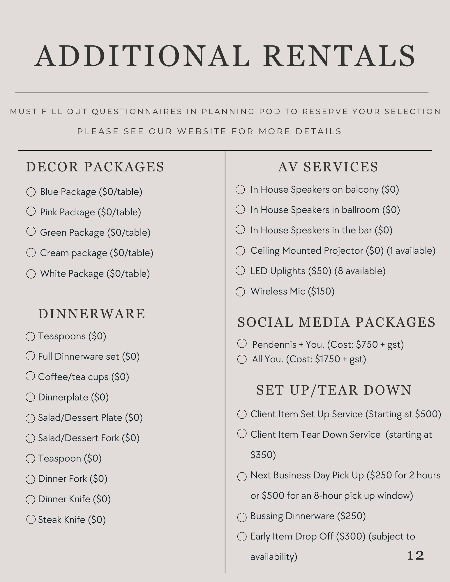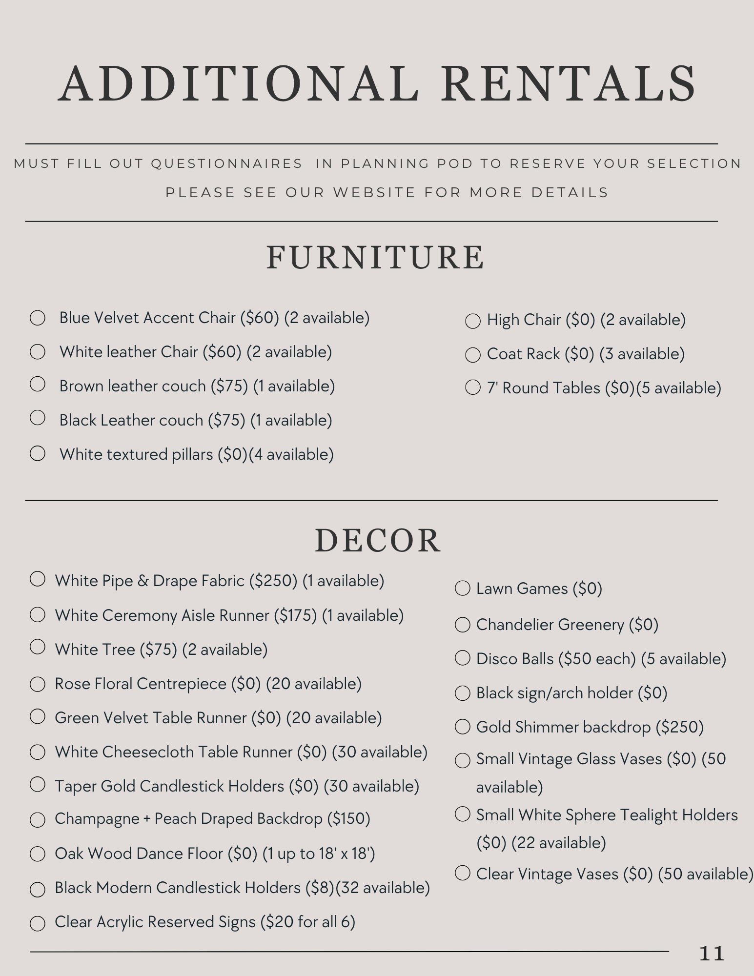 Additional rentals.......................................................................11 - 13