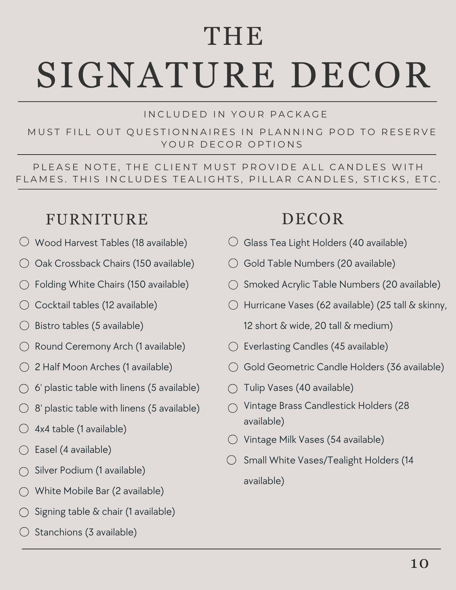 The signature decor...........................................................................10