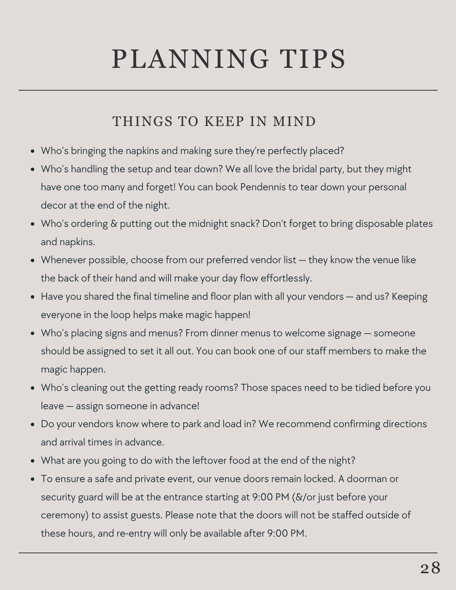 Planning tips.........................................................................................28