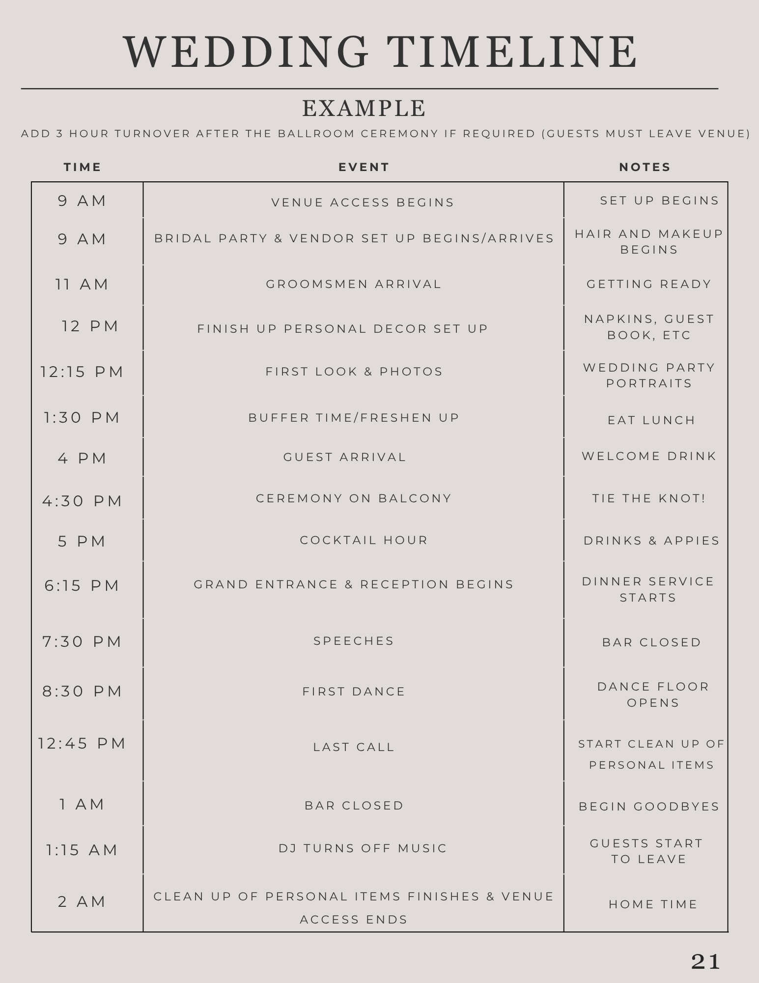 Wedding timeline.................................................................................21