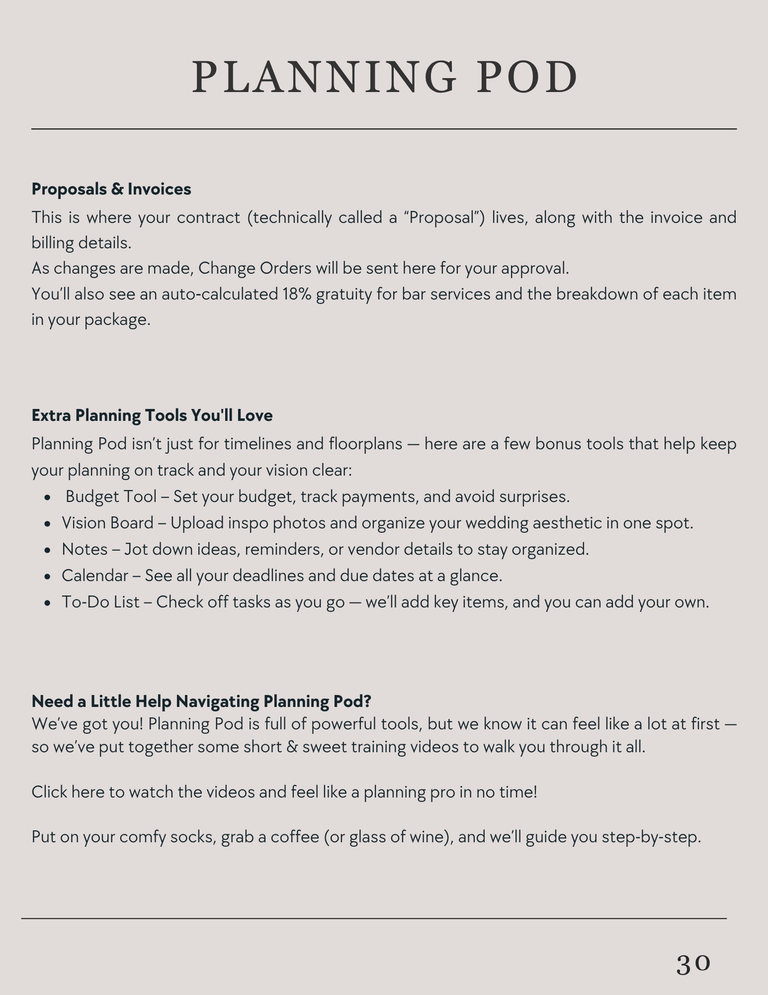 Planning Pod....................................................................................29-30