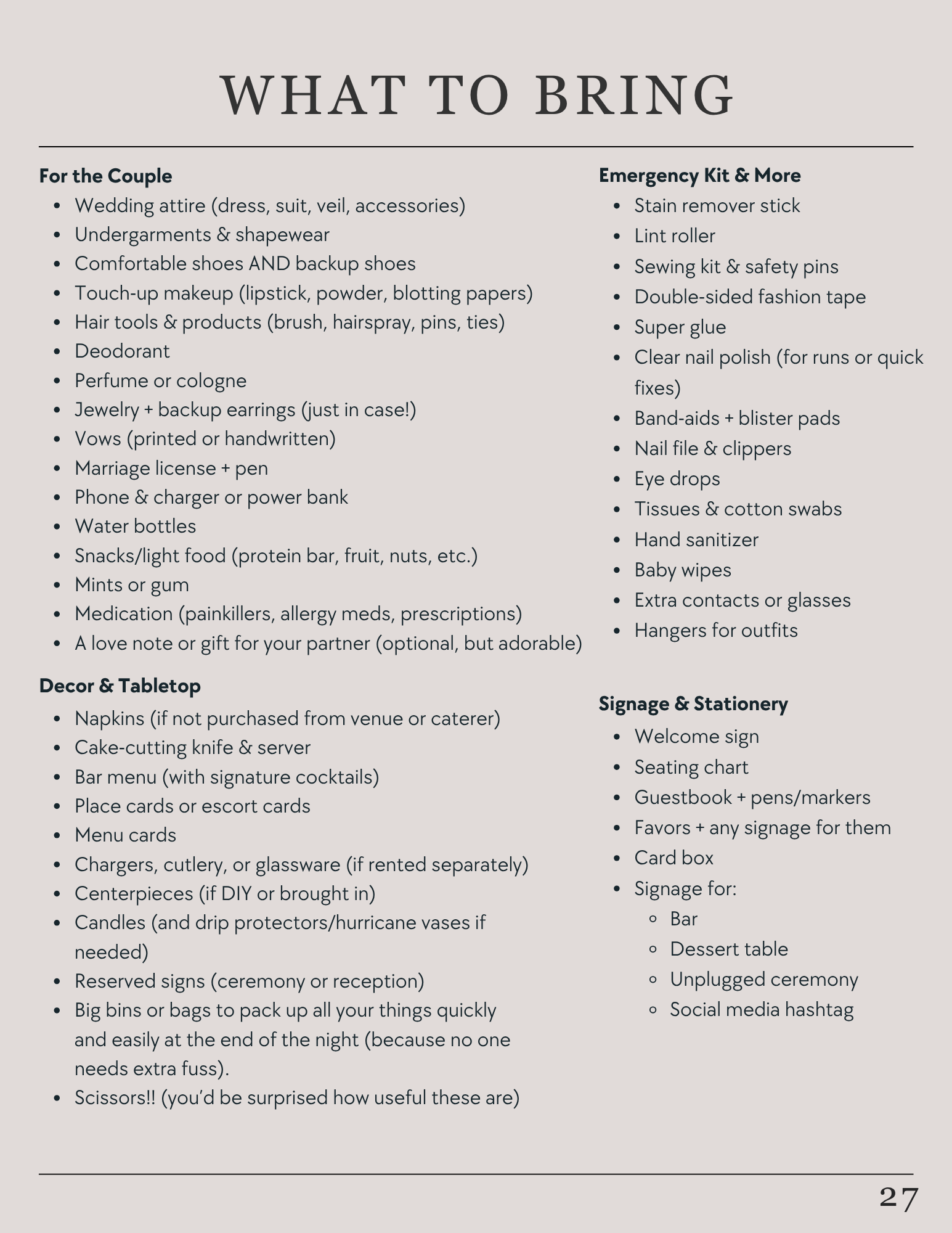 What to bring.......................................................................................27